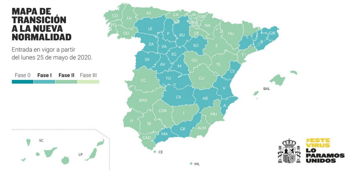 Lunes 25 de mayo toda España estará, al menos, en la Fase 1 y el 46% de la población en la Fase 2
